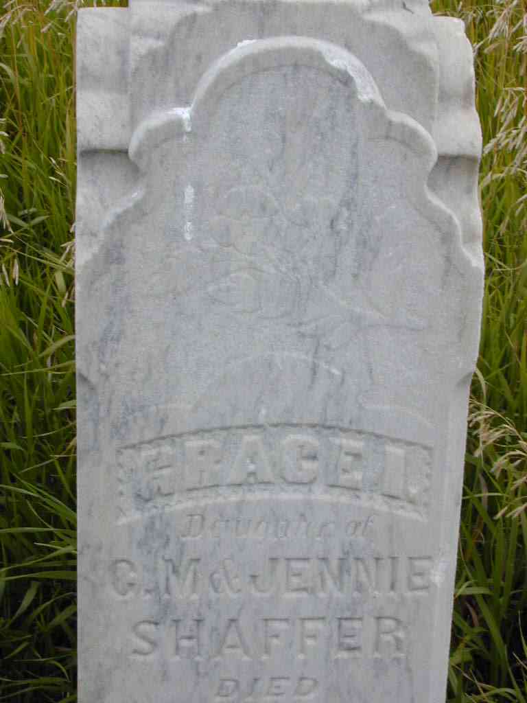 Grace L. Daughter of G. M. & Jennie Schaffer Died June 20, 1888 Age 9 mths.