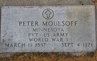 | MOULSOFF LARGE STONE MOULSOFF, Peter MINNESOTA PVT US ARMY WORLD WAR I MOULSOFF, Clara | 1887/03/19 1885 | // | 1971/09/04 1951 | // | Photo Photo | // | |