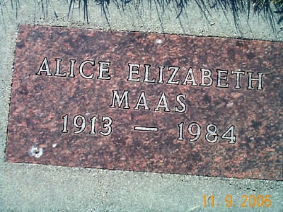 | MAAS, ARNOLD Frank MAAS (MERRIFIELD), Alice Elizabeth (Mar. 1940/07/15) | 1912/--/-- 1913/--/-- | 1987/--/-- 1984/09/06 | Photo Photo | // | *** | // |