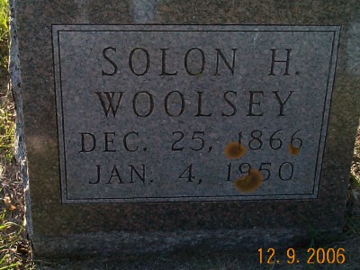 | WOOLSEY, Solon WOOLSEY, Elizabeth J. WOOLSEY, Boyd | 1866/12/25 1876/09/23 1866/12/25 | 1950/01/04 1962/11/20 1905/06/14 | PhotoPhoto Photo | // | *** | // |