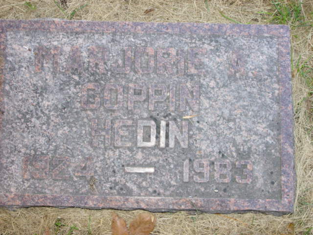 | HEDIN (COPPIN), Marjorie A.(Dau. of Fred & Lydia) | 1924/--/-- | 1983/--/-- | Photo | // | * | // |