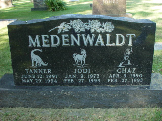 | MEDENWALDT, Tanner MEDENWALDT, Jodi MEDENWALDT, Chaz | 1991/06/12 1972/01/03 1990/04/03 | 1994/05/29 1995/02/27 1995/02/27 | Photo | // | * | // |
