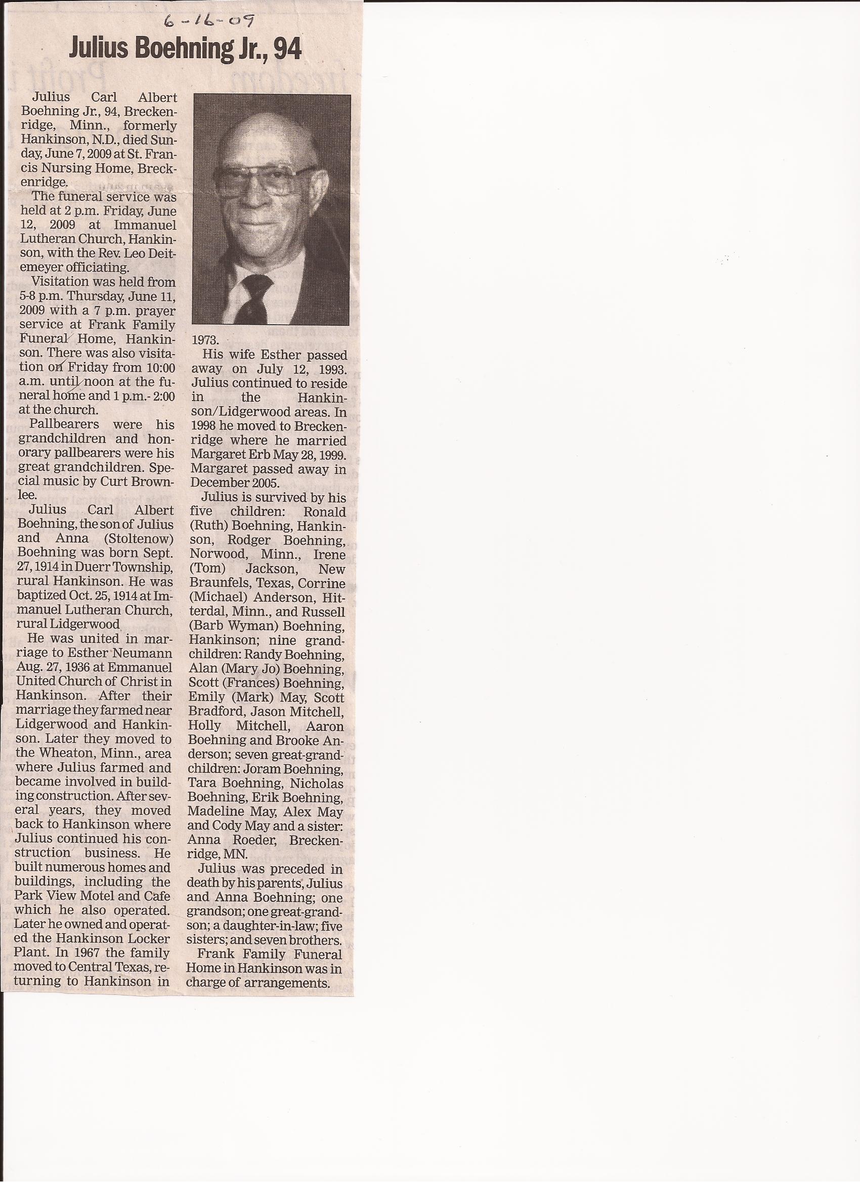 | BOEHNING, Julius | 1914/09/27 | 2009/06/07 | // | // | Obit | ||||||