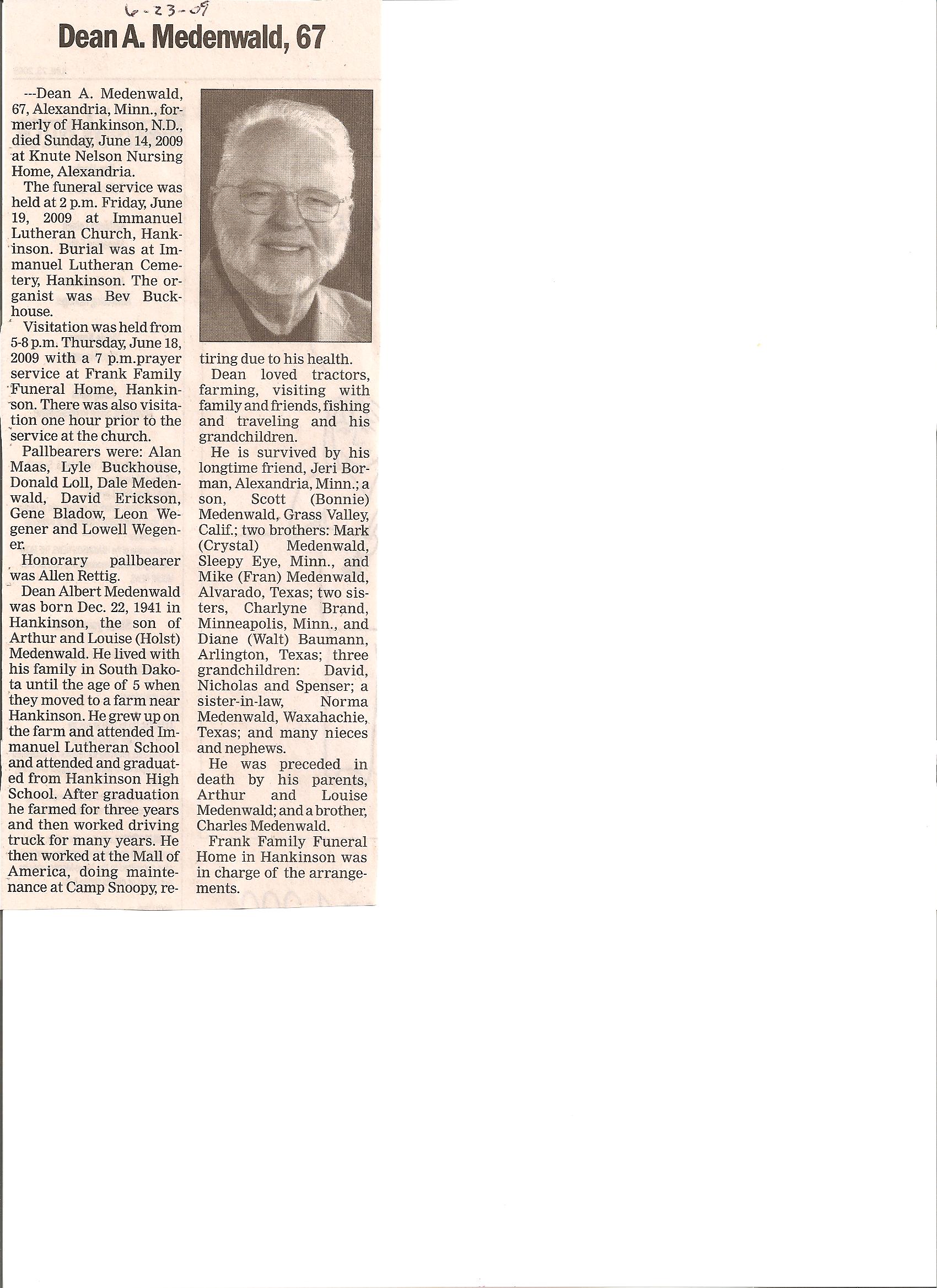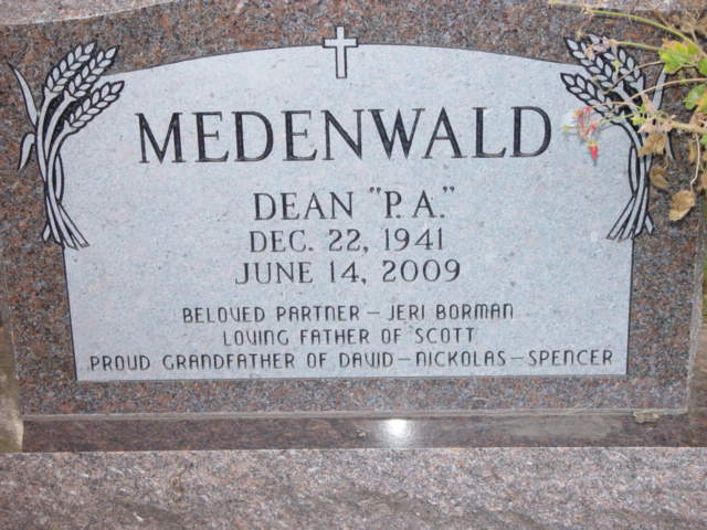 | MEDENWALD, Dean Albert Father of: David,Nickolas,Spencer Partner-Jeri Borman | 1941/12/22 | 2009/06/14 | Photo* | Photo* | Obit | ||||||