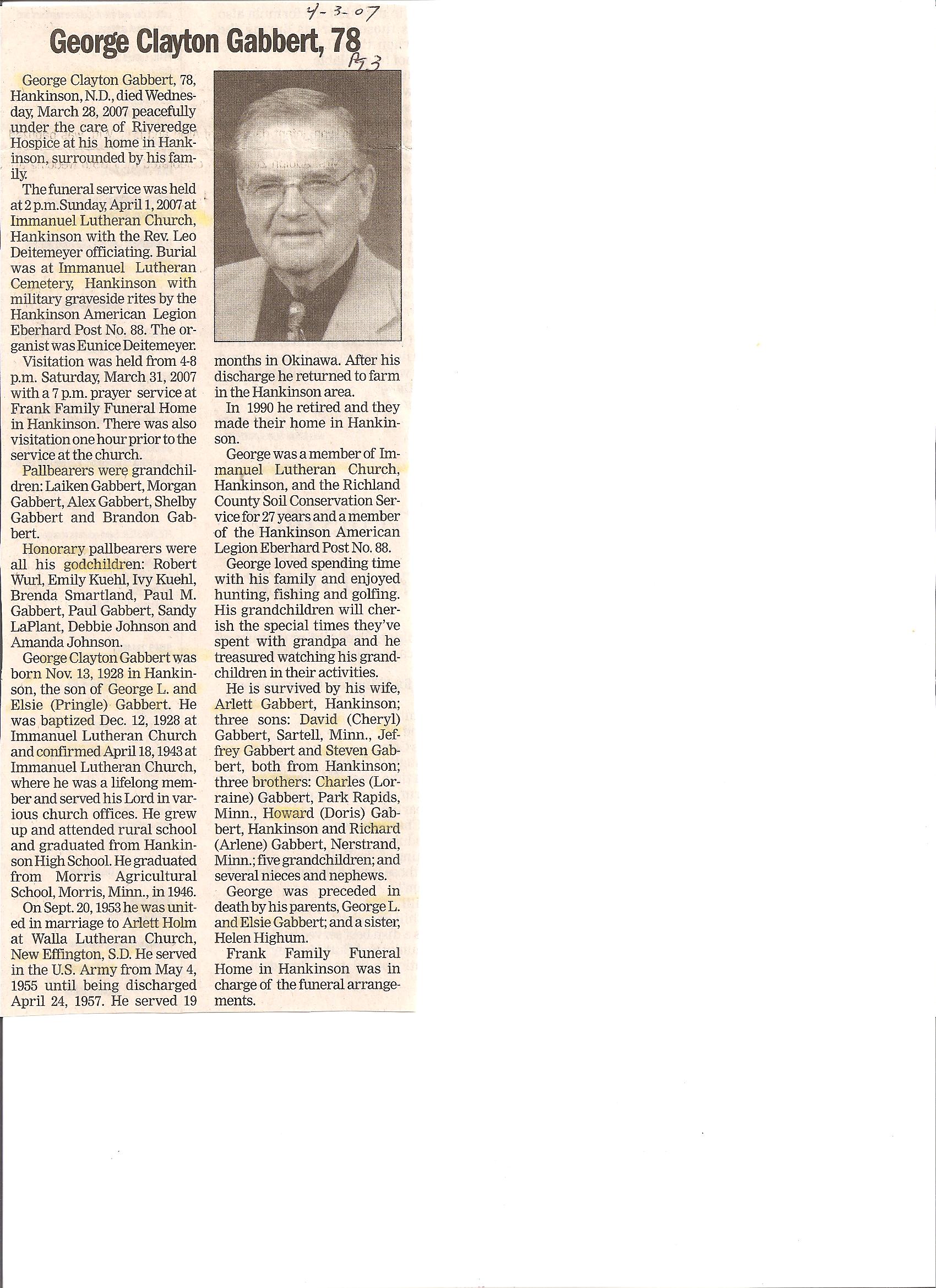 | GABBERT, George Clayton | 1928/11/13 | 2007/03/28 | // | // | Obit | ||||||