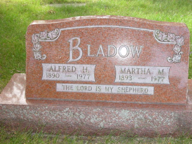 | BLADOW, Alfred H. BLADOW, Martha M. | 1890/--/-- 1893/--/-- | 1977/--/-- 1977/--/-- | Photo* | // | // | ||||||