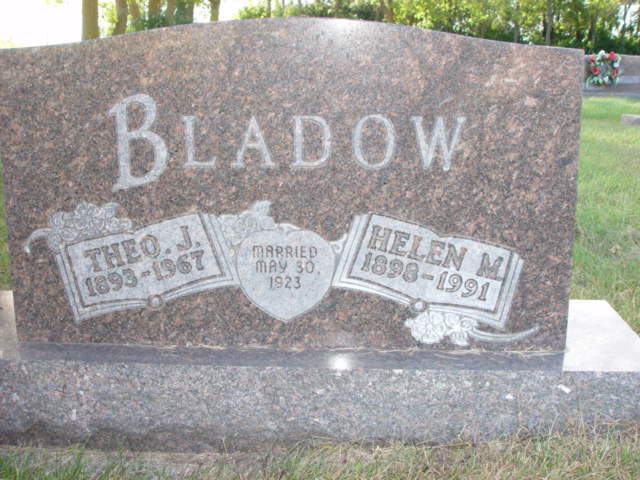 | BLADOW, Theodore John BLADOW (POLFESS), Helen M. Mar. 1923/05/30 | 1893/11/22 1898/05/18 | 1967/12/21 1991/11/16 | Photo* | // | // | ||||||