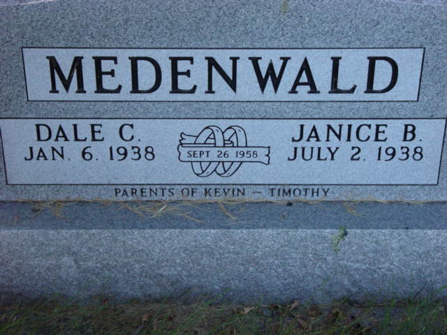 | MEDENWALD, Dale C. MEDENWALD, Janice B. Mar. 1956/09/26 | 1938/01/06 1938/07/02 | // // | Photo* | // | // | ||||||