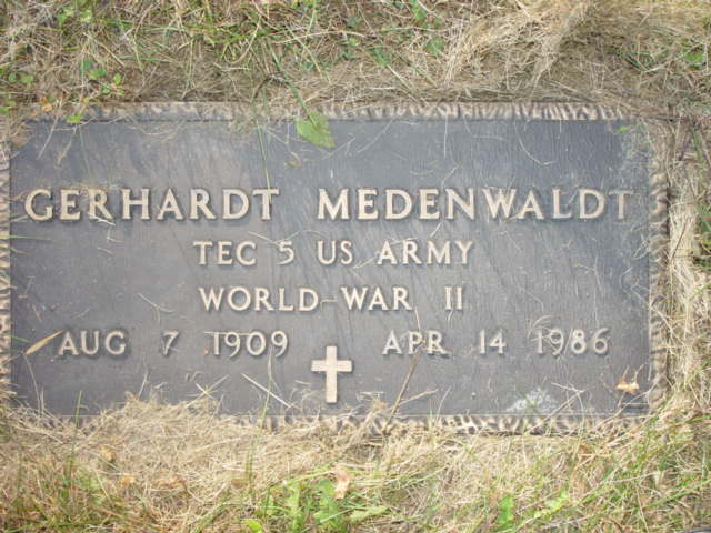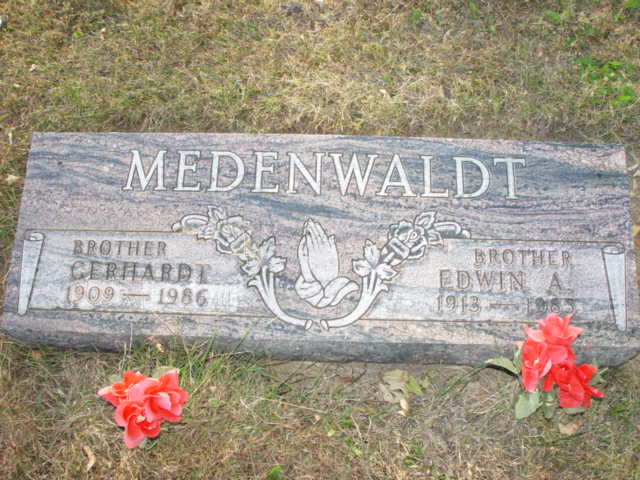 | MEDENWALDT, Gerhardt (Brother) TEC 5 US ARMY WORLD WAR 11 MEDENWALDT, Edwin A. (Brother) | 1909/08/07 1913/12/04 | 1986/04/01 1985/12/-- | Photo* | Photo* | // | ||||||