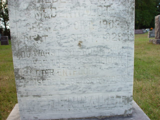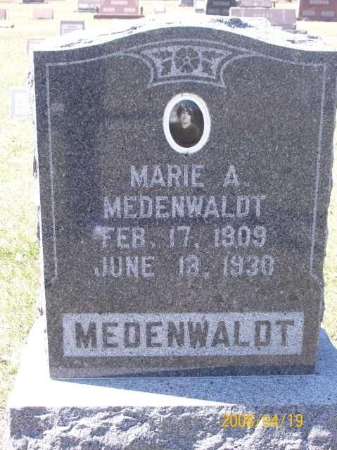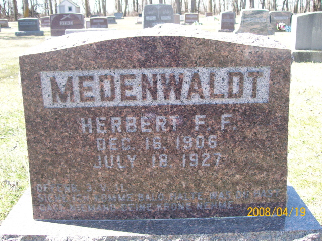 | MEDENWALDT, Ferdnand MEDENWALDT, Hanna (Mar. 1873/12/12-WIS.) | 1846/04/05 1855/01/14 | 1931/08/25 1930/01/20 | Photo* | // | // | ||||||
