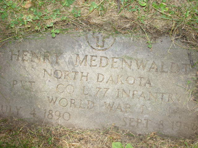 | MEDENWALDT, Henry NORTH DAKOTA PVT CO L 77 INFANTRY WORLD WAR I | 1890/07/04 | 1967/09/08 | Photo* | // | // | ||||||