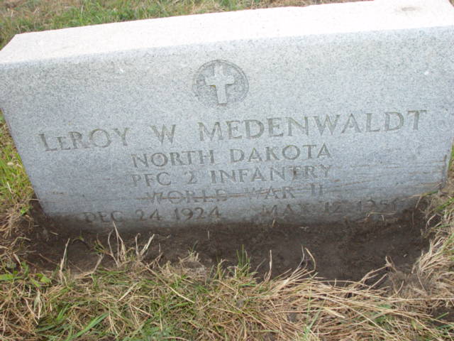 | MEDENWALDT, Leroy NORTH DAKOTA PFC 2 INFANTRY WORLD WAR II Mar. Beulah KRAUSE | 1924/12/24 | 1951/05/12 | Photo* | // | // | ||||||