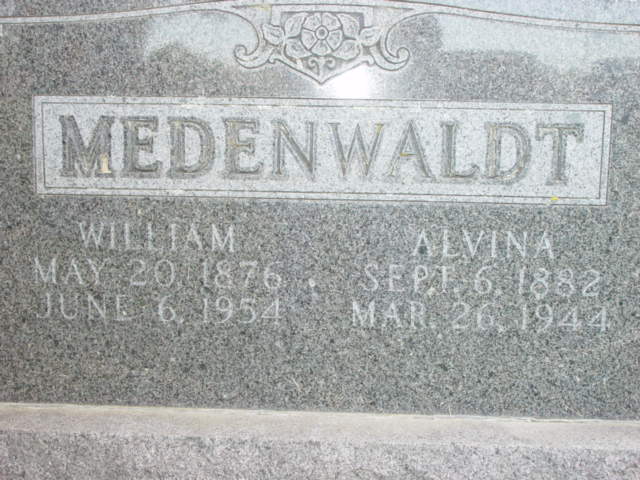 | MEDENWALDT, William MEDENWALDT (HOEFS), Alvina | 1876/05/20 1882/09/06 | 1954/06/06 1944/03/26 | Photo* | // | // | ||||||