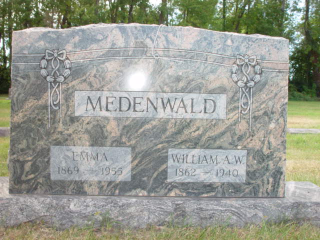 | MEDENWALD, William A.W. MEDENWALD (Krueger), Emma | 1862/05/11 1869/11/03 | 1940/01/22 1955/07/18 | Photo* | // | // | ||||||