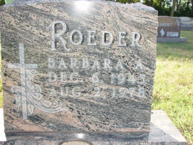 | ROEDER, Barbara Ann (Dau. of Roland & Doris (Petrich) Roeder) | 1945/12/06 | 1978/08/02 | Photo* | // | // | ||||||