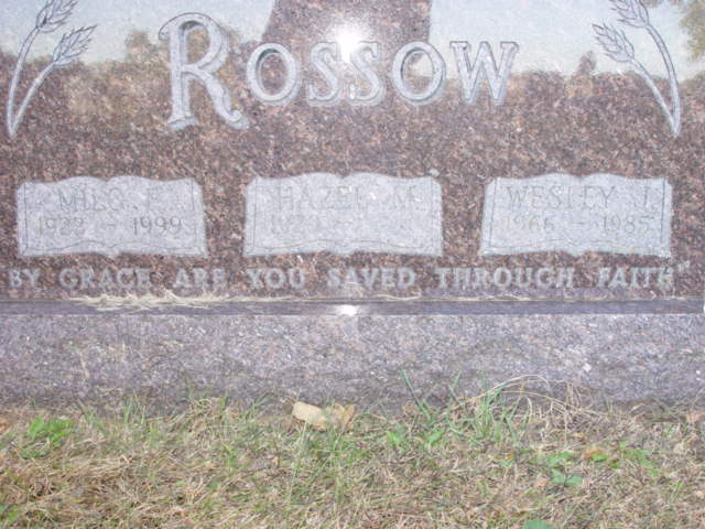 | ROSSOW, Milo ROSSOW (KUTTER), Hazel M. ROSSOW, Wesley L. (Son) Mar. 1909/10/09 | 1923/--/-- 1929/--/-- 1966/--/-- | 1999/--/-- ----/--/-- 1985/--/-- | Photo* | // | // | ||||||