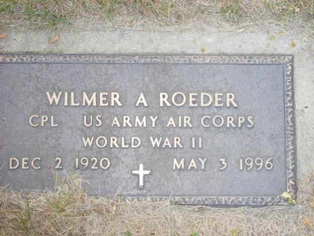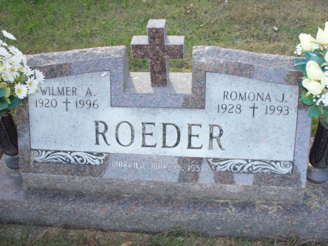 | ROEDER, Wilmer A. CPL US ARMY AIR CORPS WORLD WAR II ROEDER (PETRICH), Romona Joyce Mar. 1951/03/15 | 1920/12/02 1928/07/18 | 1996/05/03 1993/12/18 | Photo* | Photo* | // | ||||||
