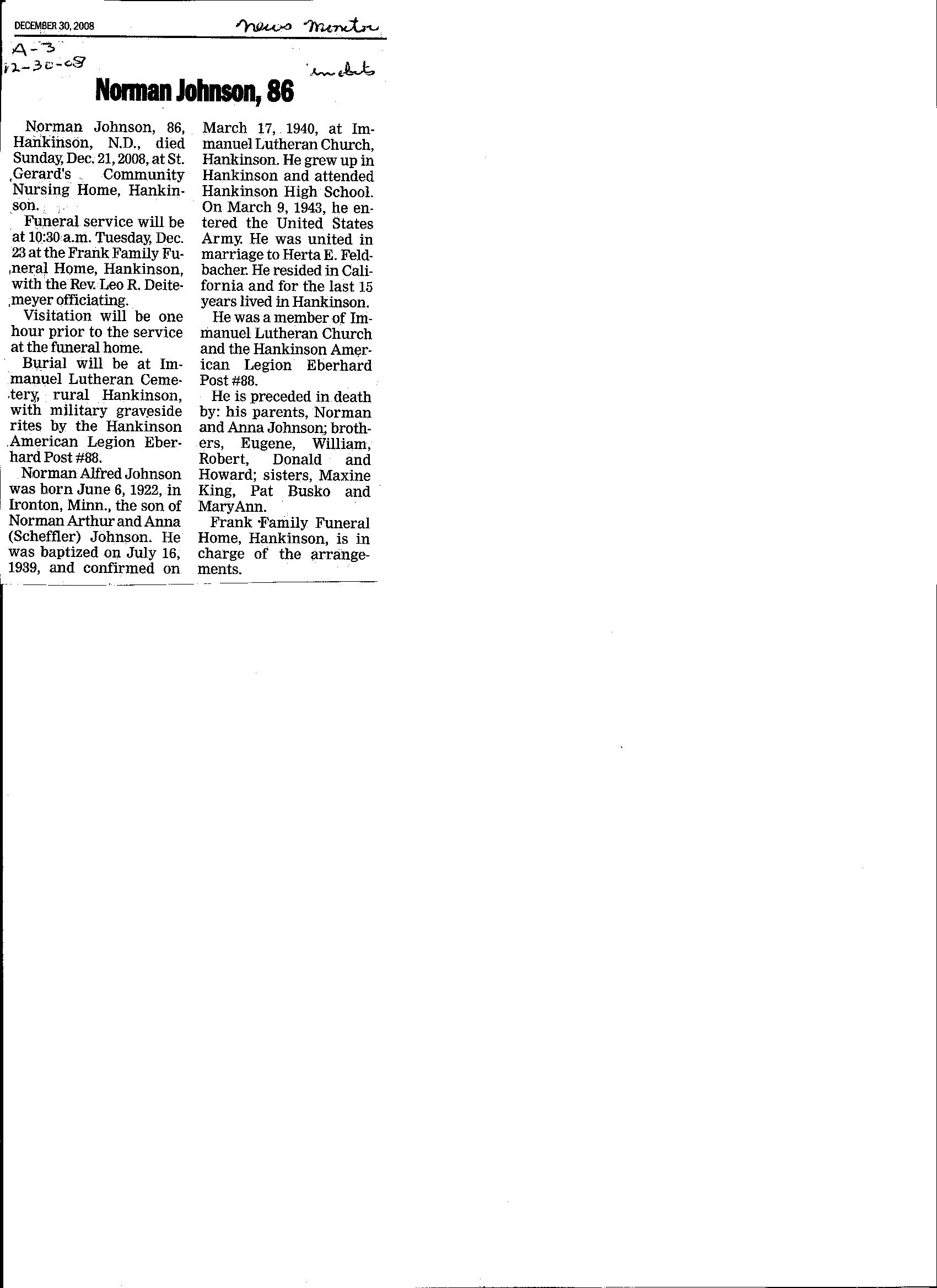 | JOHNSON, Norman | 1922/06/06 | 2008/12/21 | // | // | Obit | ||||||