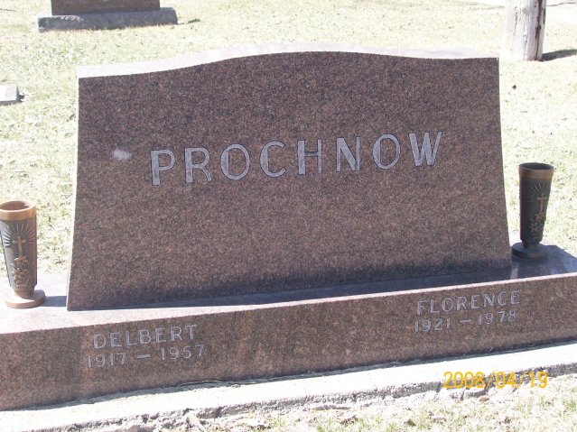 | PROCHNOW, Delbert Theodore Alfred PROCHNOW, Florence | 1917/--/-- 1921/--/-- | 1957/--/-- 1978/--/-- | Photo | // | // | ||||||