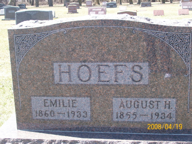 | HOEFS, August H. HOEFS, Emilie 1st recorded marriage in Richland County Territory | 1855/--/-- 1860/--/-- | 1934/--/-- 1933/--/-- | Photo | // | // | ||||||