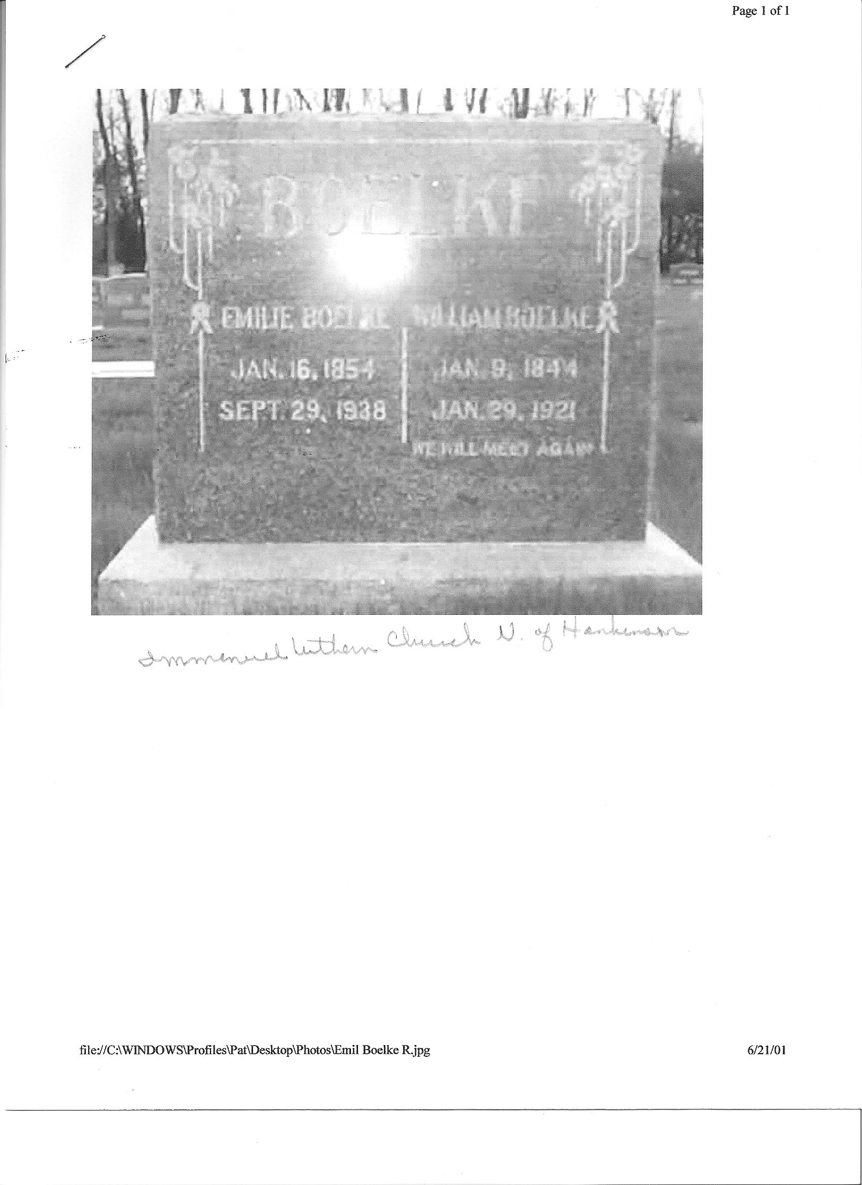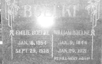 | BOELKE, Emilie BOELKE, William | 1854/01/16 1844/01/09 | 1938/09/29 1921/01/29 | Photo | Photo | // | ||||||