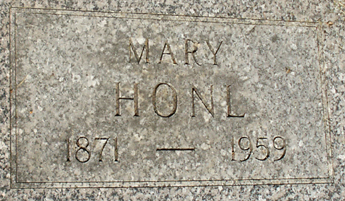 | HONL, Adolph G.(Wife-Mary) | 1879/07/02 | 1953/--/-- | Roseau, MN | Photo by James Honl | // | // | |