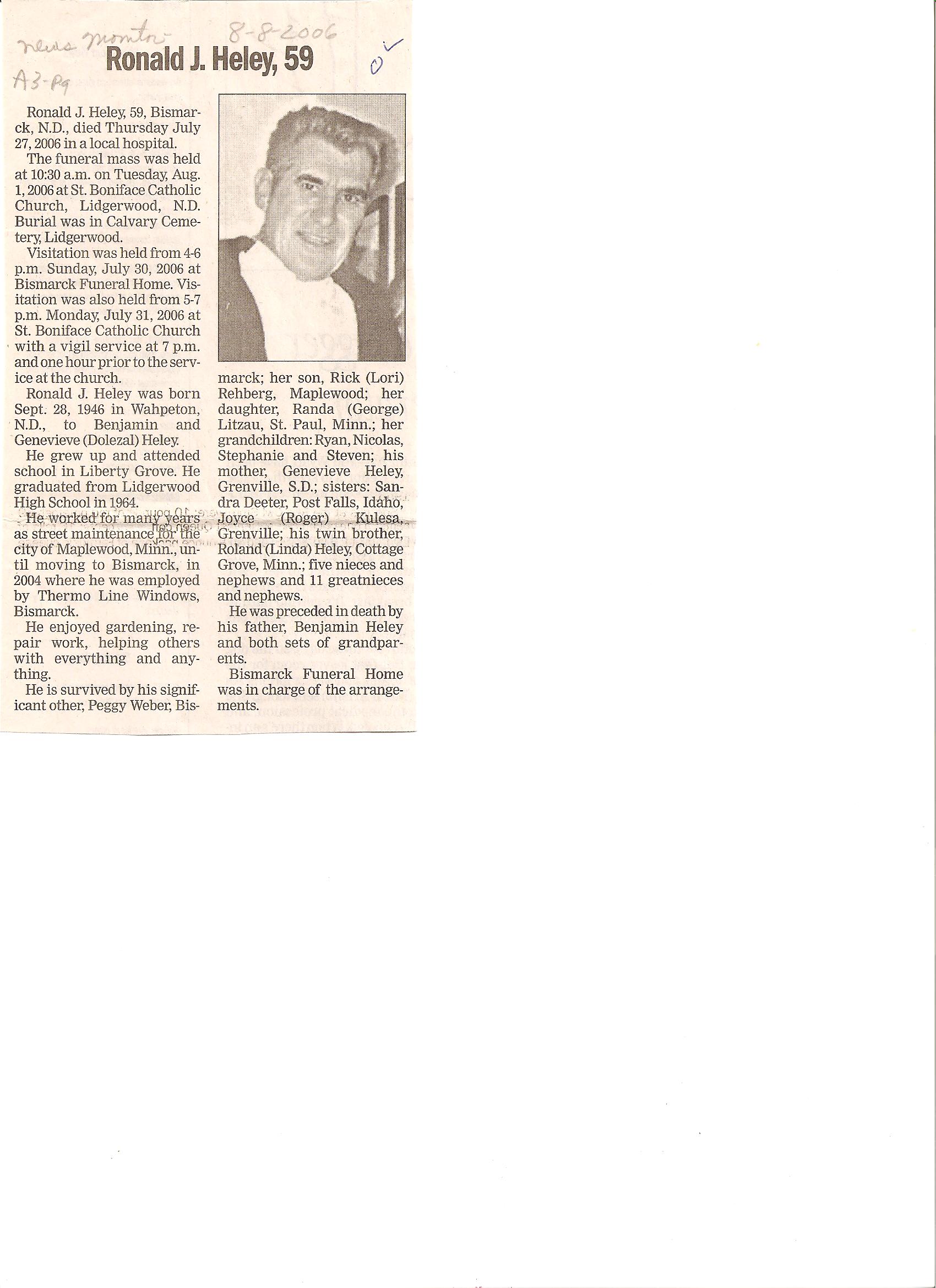 | HELEY, Ronald J. | // | 1946/09/28 | 2006/07/27 | // | // | Obit | // |