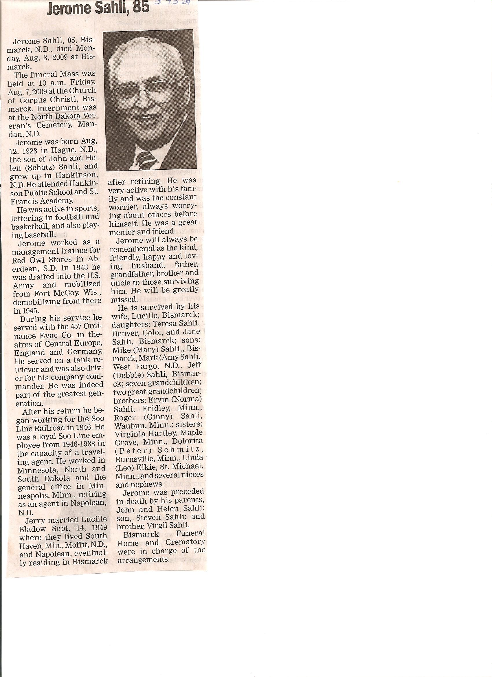 | Sahli, Jerome | // | 12 Aug. 1923 | 08 Aug. 2009 | Obit |