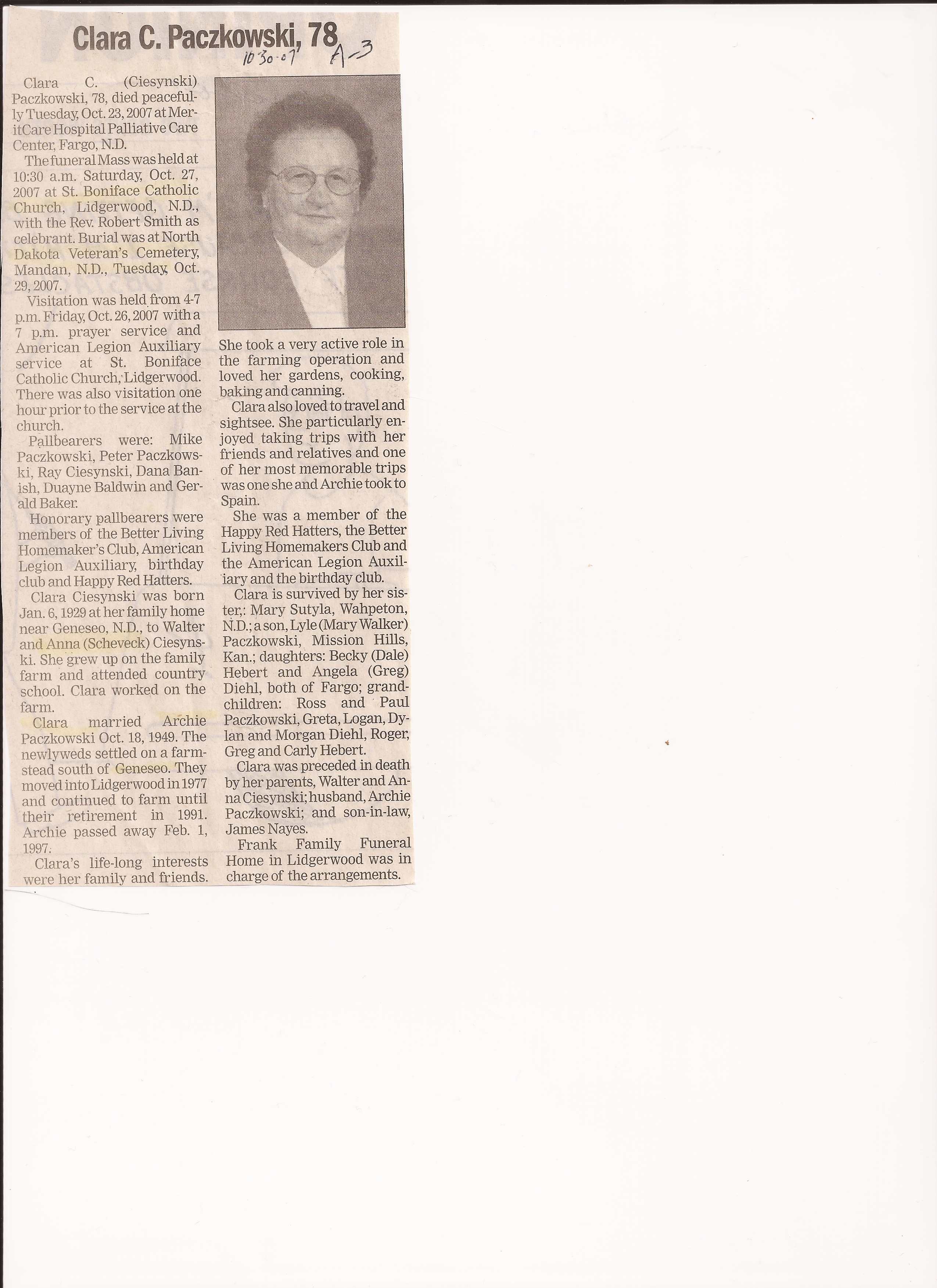 | Paczkowski, Clara C. | // | 1929/01/06 | 2007/10/23 | Obit |
