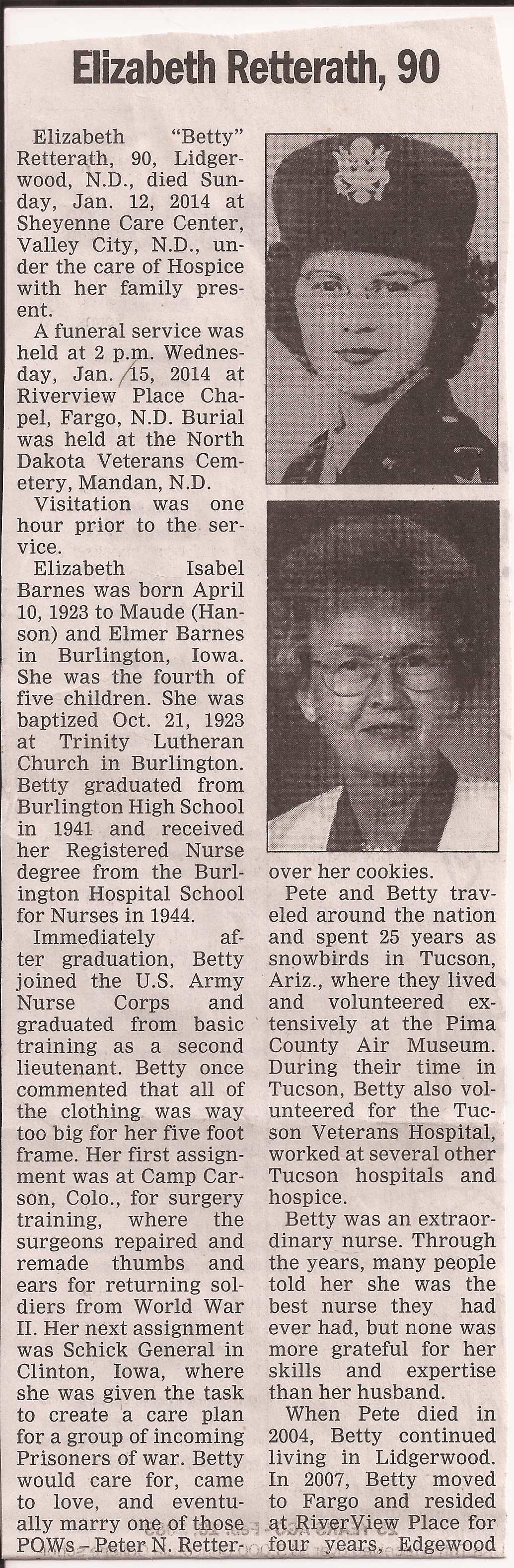 | RETTERATH (BARNES), Elizabeth Isabel | // | 10 April 1923 | 12 January 2014 |