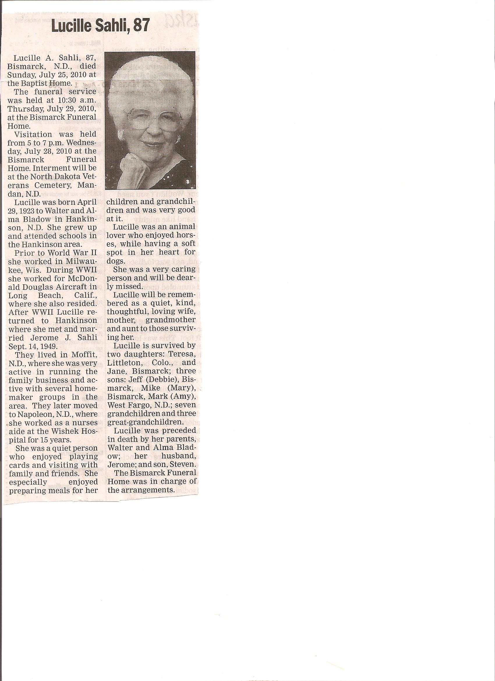 | Sahli, Lucille A. | // | 03 April 1923 | 07 July 2010 | Obit |