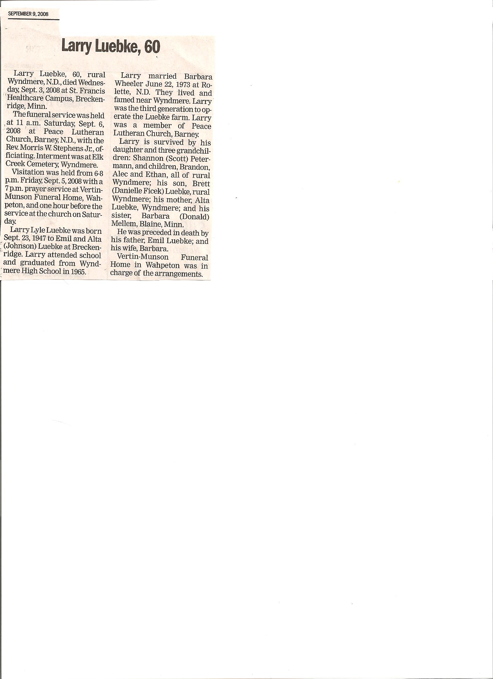 | // | LUEBKE, Larry | // | 1947/09/23 | 2008/09/03 | // | Obit |