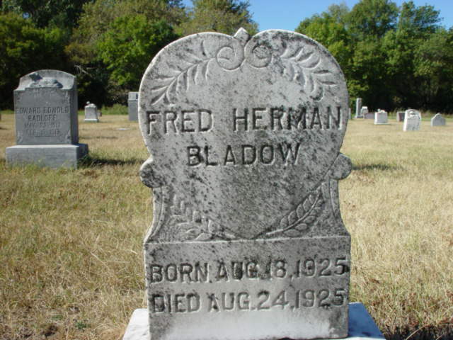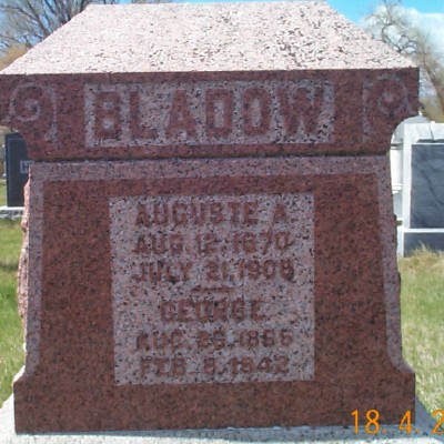 | BLADOW, George K. BLADOW (ROEDER), Auguste A.(Mar. 1913/05/27)(1st wife)(2nd wife-Rose Martin) | 1865/08/26 1870/08/12 | 1942/02/08 1908/07/21 | Photo | // | // | |