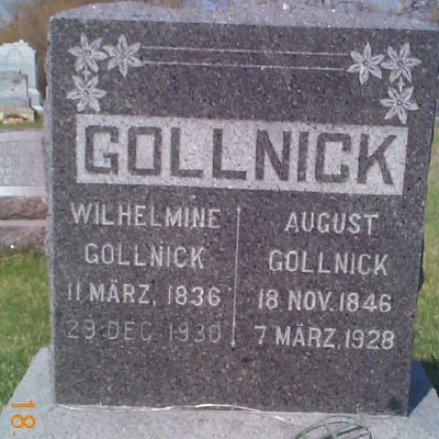 | GOLLNICK, August GOLLNICK (JASTROV-1st husband), Mathilda Wilhelmine | 1846/11/18 1836/03/11 | 1928/03/07 1930/12/29 | Photo | // | // | |
