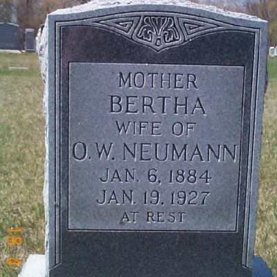 | NEUMANN, Bertha (wife of D.W. Neumann) | 1884/01/06 | 1927/01/19 | Photo | // | // | |