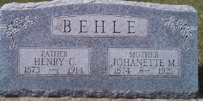 | BEHLE, Henry C. BEHLE (SCHUTLER), Johanette M. Mar. 1899/04/-- | 1873/--/-- 1874/--/-- | 1914/11/19 1921/--/-- | Photo | // | // | |