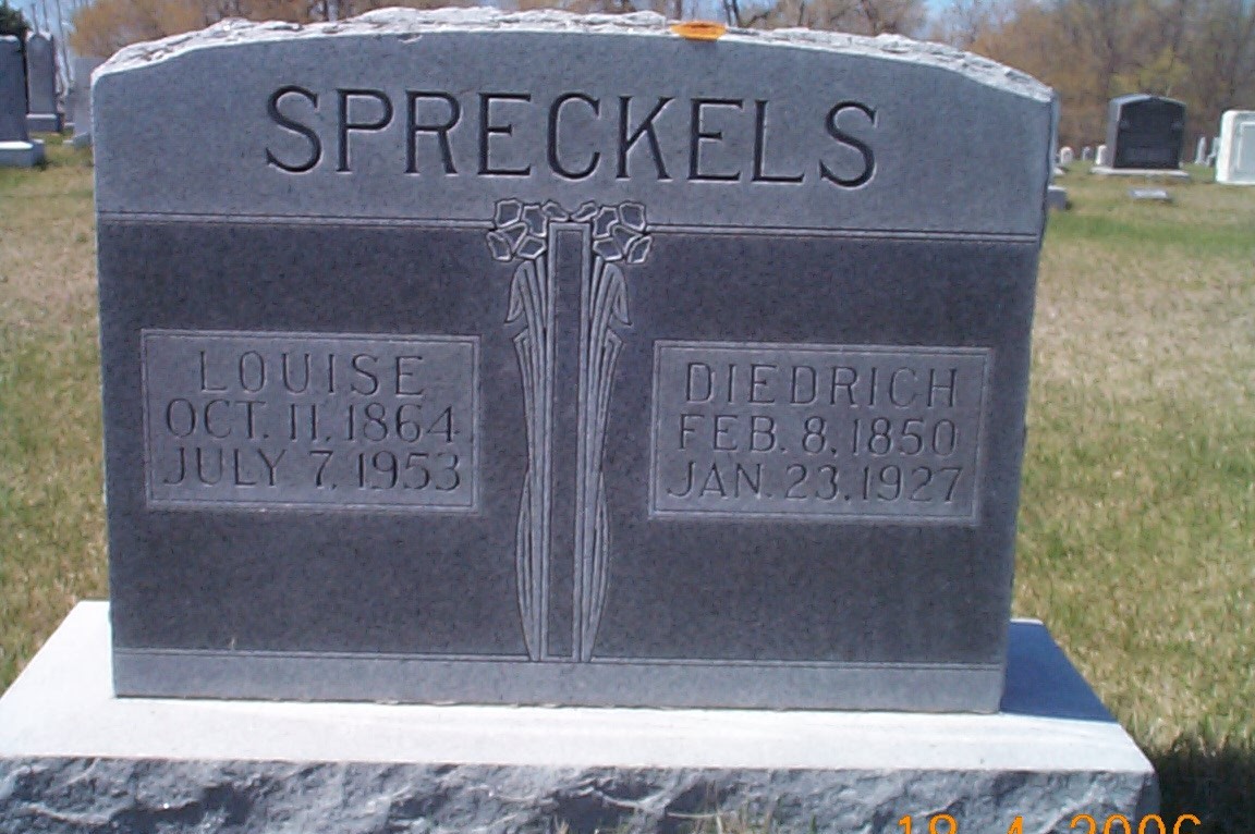 | SPRECKLES, Diedrich SPRECKLES, Louise | 1850/02/08 1864/10/11 | 1927/01/23 1953/07/07 | Photo | // | // | |