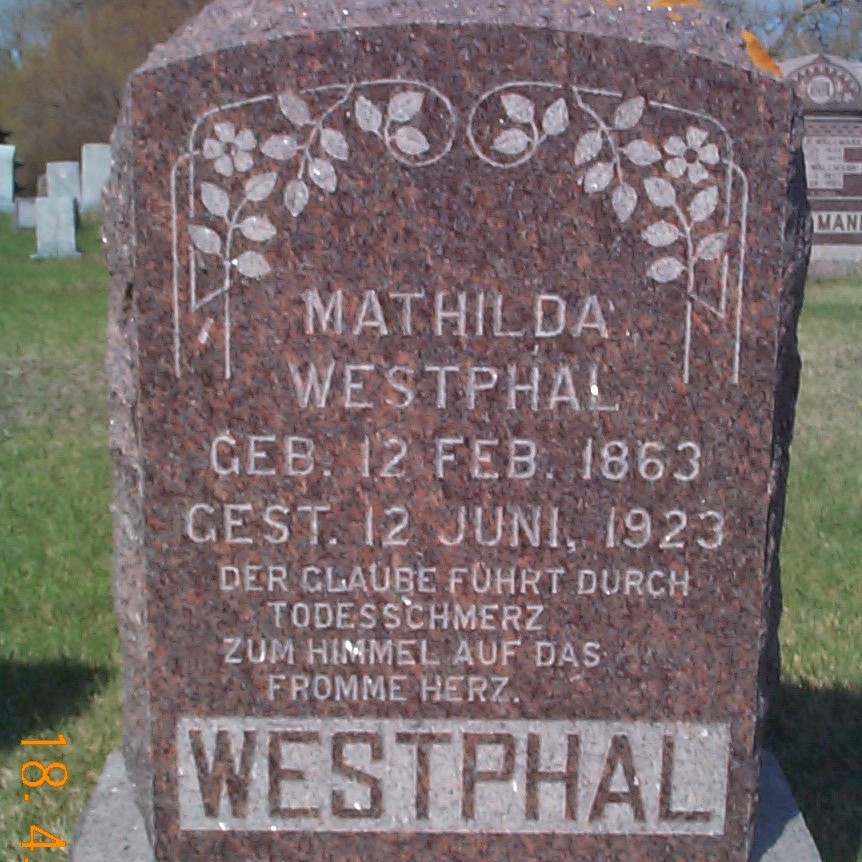 | WESTPHAL, Wilhelm WESTPHAL, Mathilda | 1860/03/16 1863/02/12 | 1925/02/26 1923/06/12 | Photo Photo | // | // | |