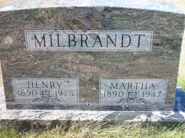 | MILBRANDT, Henry MILBRANDT (WALLMAN), Martha (Mar. 1913/06/12) | 1890/07/30 1890/--/-- | 1975/05/27 1947/12/24 | Photo* | // | // | |