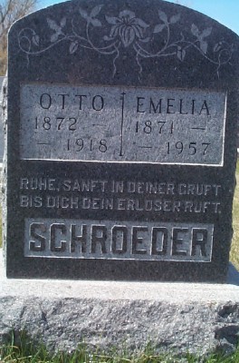 | SCHROEDER, Otto SCHROEDER, Emelia | 1872/--/-- 1871/--/-- | 1918/--/-- 1975/--/-- | Photo | // | // | |