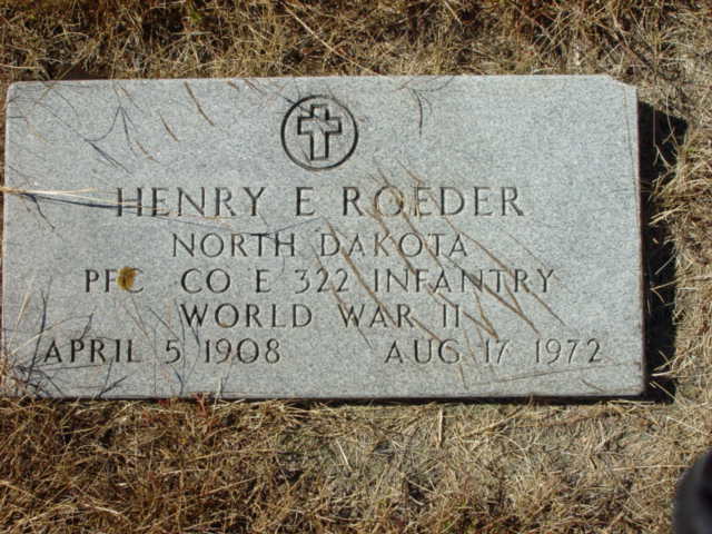 | ROEDER, Henry E. (Mar. PFAIFFER, Eva) NORTH DAKOTA PFC CO E 322 INFANTRY WORLD WAR II | 1908/04/05 | 1972/08/17 | Photo* | // | // | |