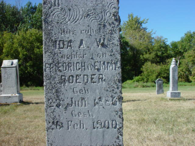 | ROEDER, Ida A.W. (Daughter of Friederick & Emma) | 1886/07/23 | 1900/02/26 | Photo* | // | // | |