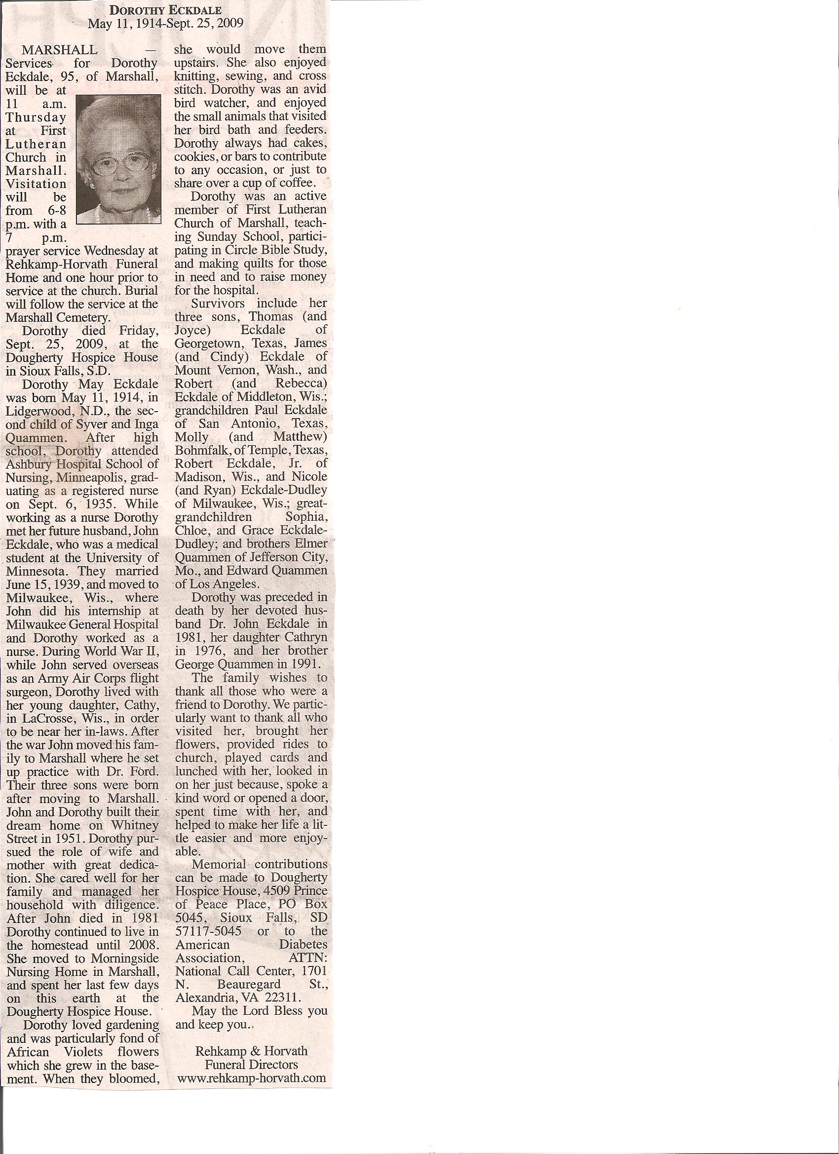 ECKDAL (Quammen), Dorothy May