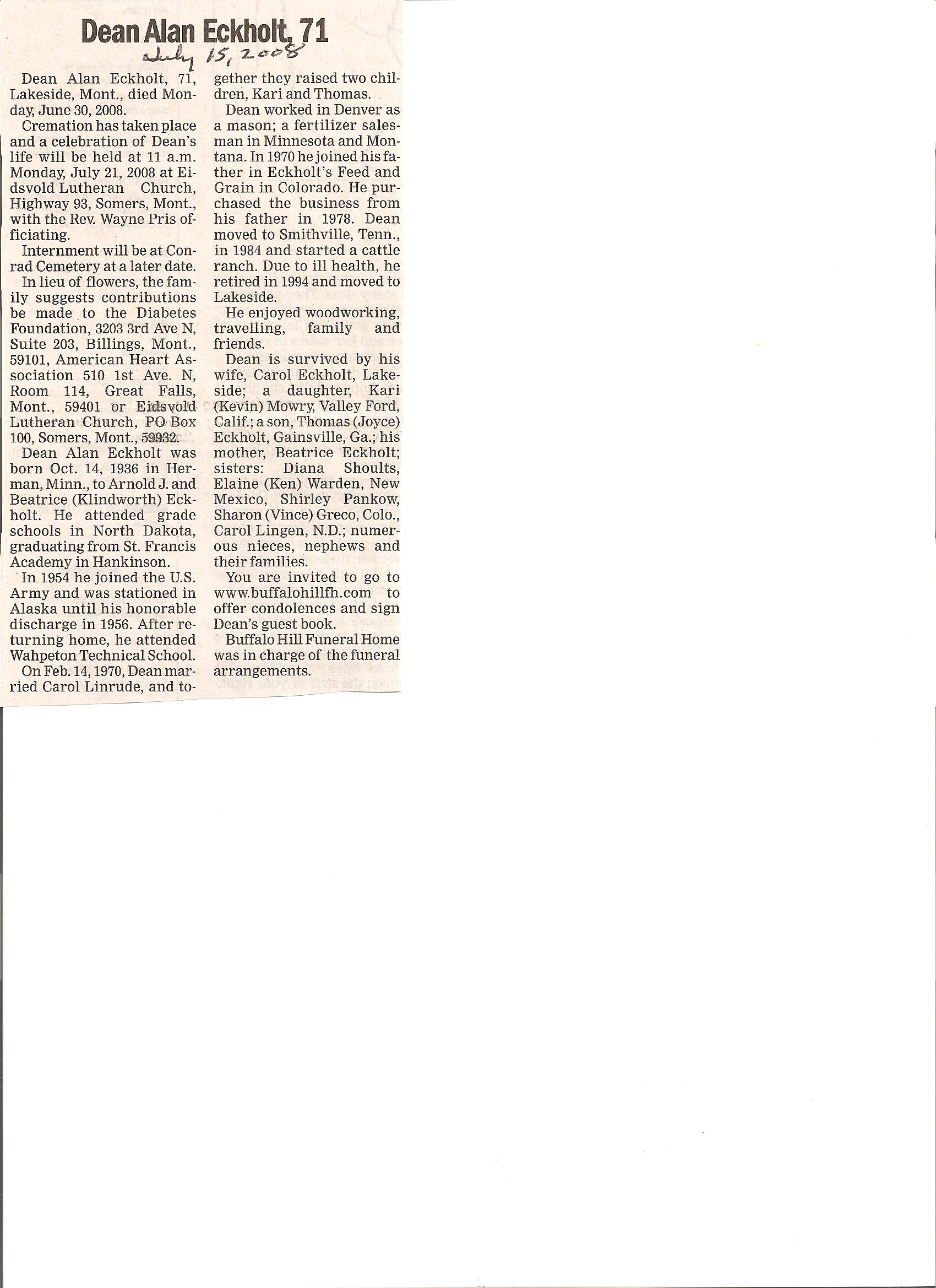 ECKHOLT, Dean Alan