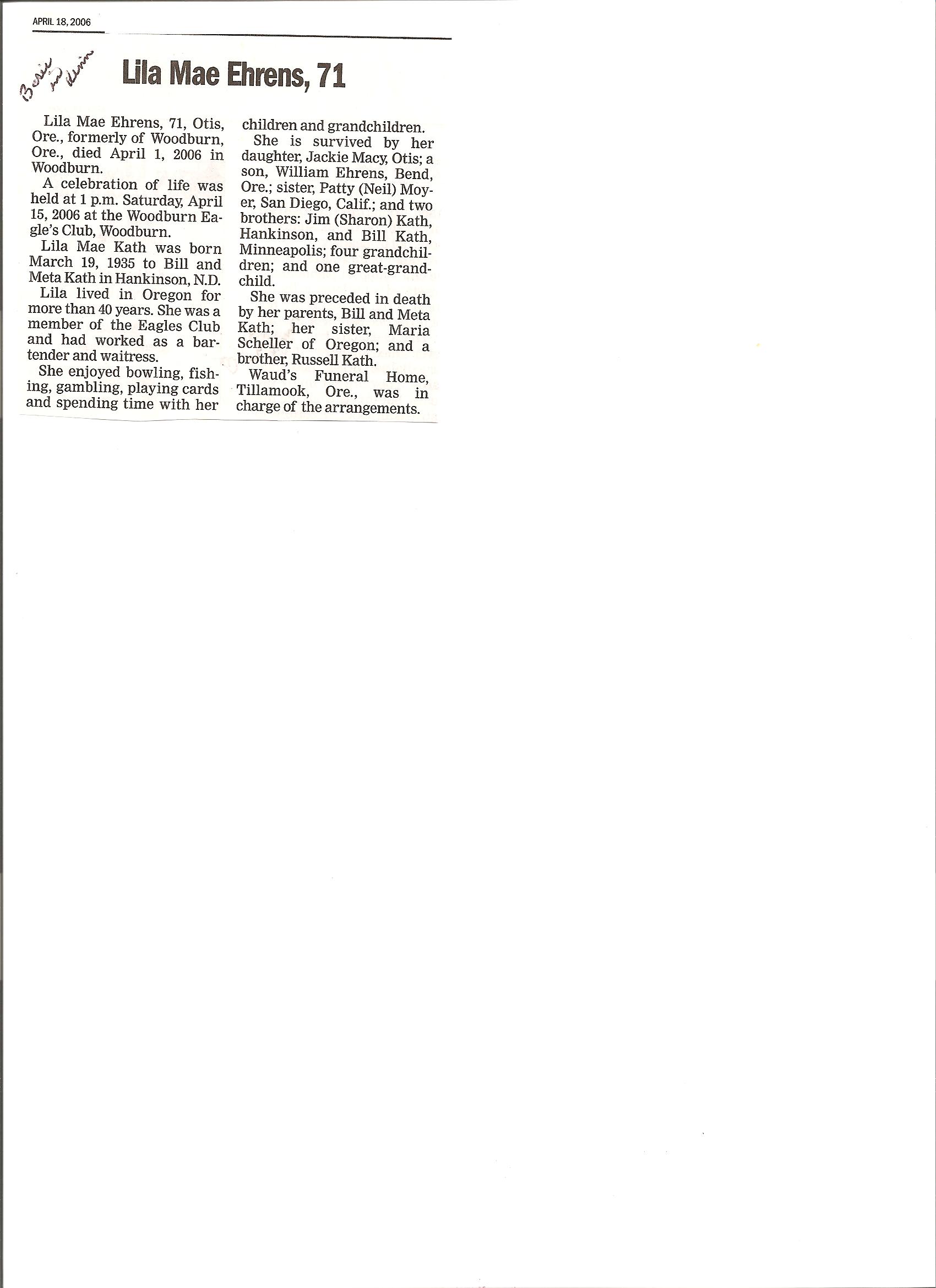 EHRENS, Lila Mae