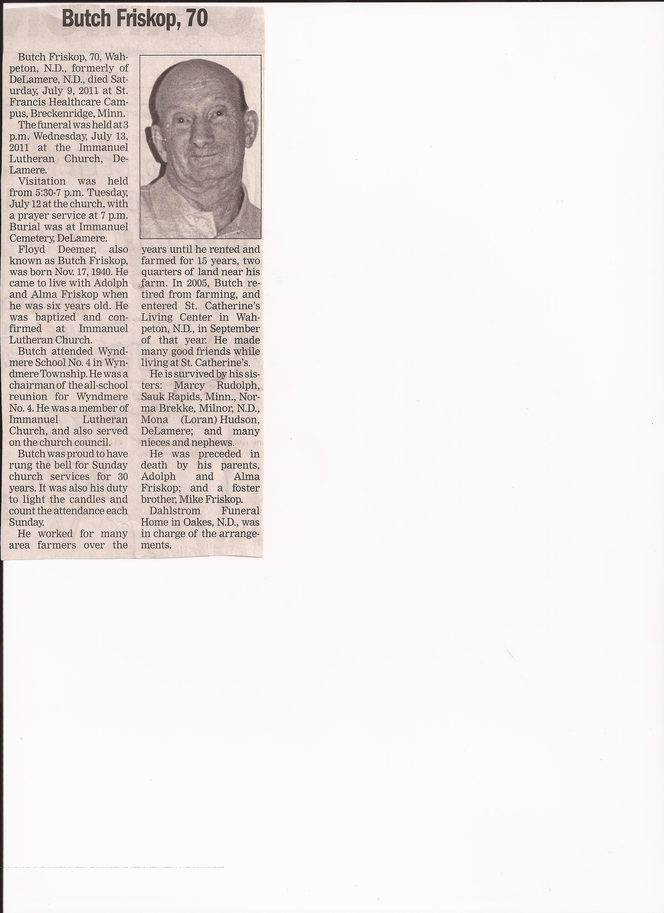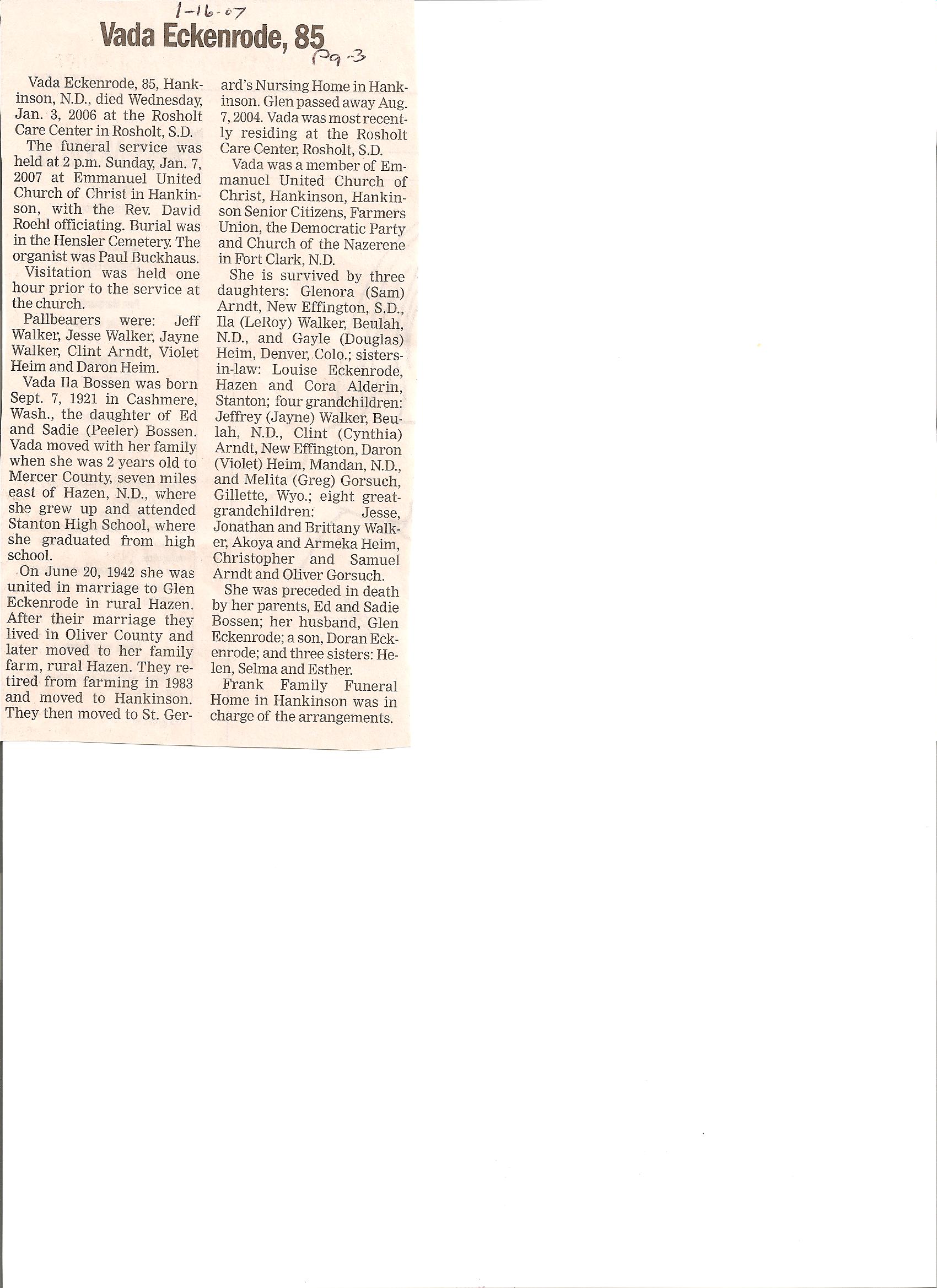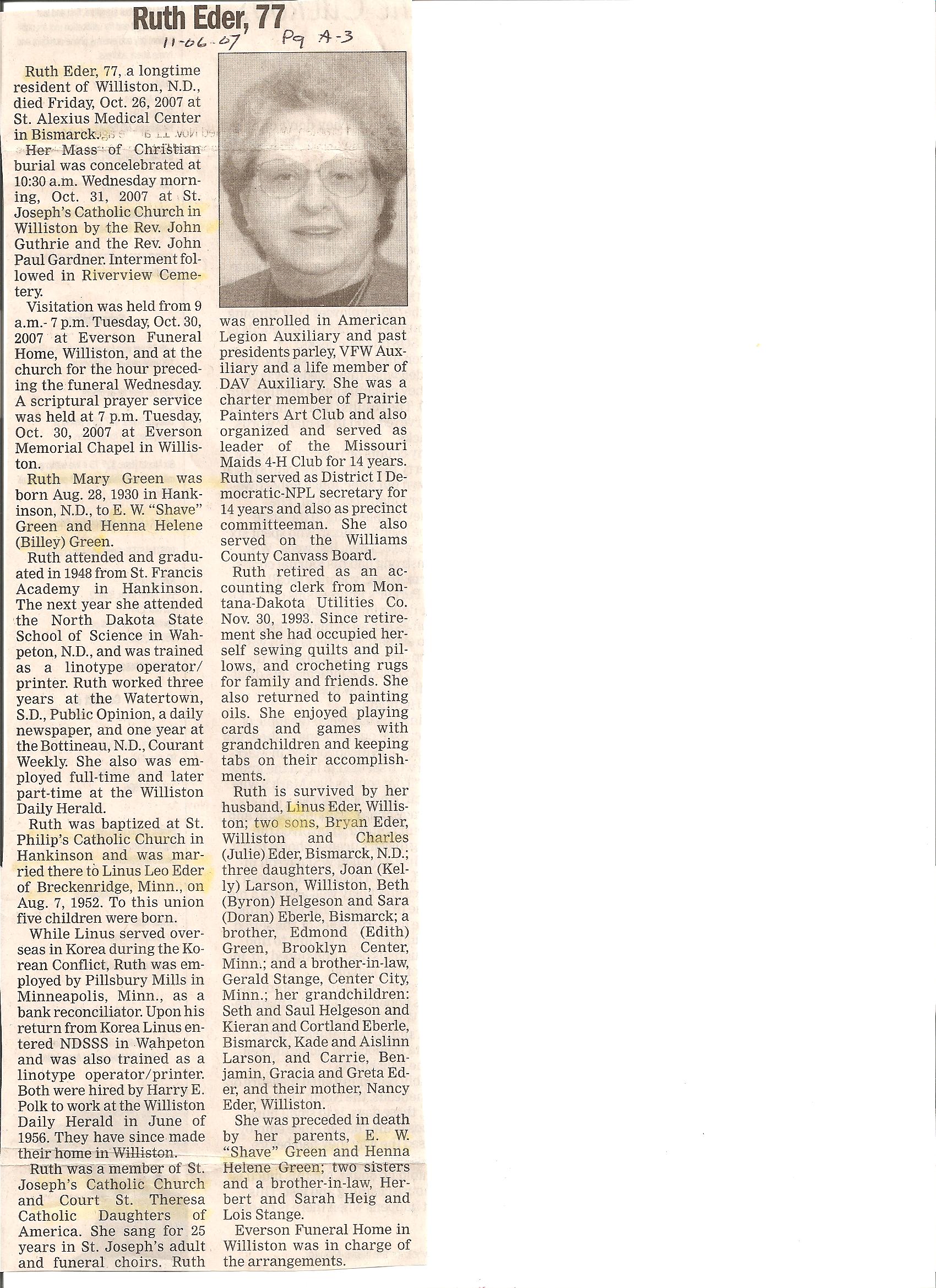 All Obit. are from News~Monitor unless stated otherwise. The dates are from the published newspaper date