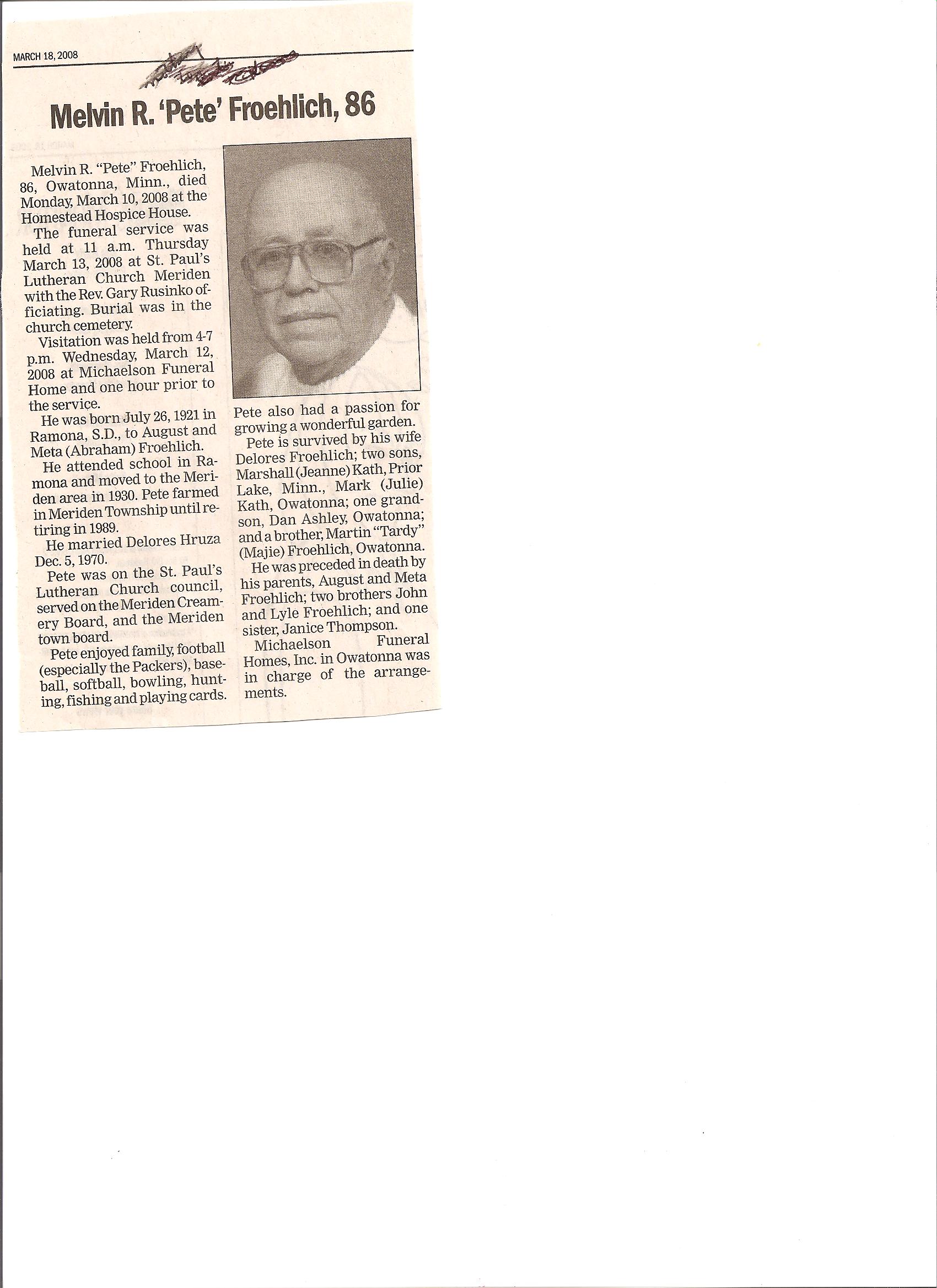 FROEHLICH, Melvin R. 'Pete"
