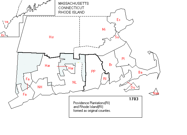 Maps (9Kb each) showing where the state and county lines were in 1703, 1729 and 1862. Maps provided by GoldBug