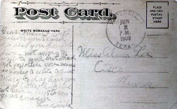 Postmarked, Iredell, Texas, 2 Jun 1909, 2 PM......